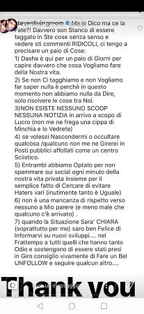 AGGIORNAMENTO – Stefano ha deciso di intervenire sul suo profilo con un post chiarificatore della situazione sentimentale e sulle motivazione che lo hanno spinto a non condividere nulla insieme alla 24enne ucraina.