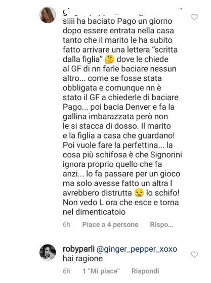 Commento a cui il marito della Volpe ha risposto con un semplice ma chiaro: “Hai ragione“, sintomo forse del fatto che non sta apprezzando particolarmente il comportamento della moglie all’interno della casa del Grande Fratello Vip.
