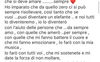 C’è voluto del tempo ma finalmente è arrivato il momento! Sono qui che guardo, scelgo, insieme a tutti voi che colore dare a questa benedetta vita che, come per ognuno di noi dovrebbe fare, da zero ha ripreso a camminare! Già perché il primo passo è stato fatto, il cammino è ripreso, devo solo continuare e non sbagliare le tonalità, lo farò con calma però perché in questi lunghissimi mesi ho imparato ad avere pazienza. Ho imparato ad ascoltare, non solo il mio cuore ma anche quello degli altri. Ho imparato a non giudicare, fatelo anche voi, vi prego. Ho imparato che si può sbagliare, l’ho fatto e lo farò sempre ma ho imparato soprattutto che si deve amare… sempre! Ho imparato che da quello zero ci si può sempre risollevare così tanto che se vuoi puoi diventare un elefante e noi tutti lo diventeremo. Io lo diventerò con l’aiuto delle persone che da sempre amo, con quelle che amerò per sempre, con quelle che mi fanno battere il cuore e che mi fanno emozionare, lo farò con la mia musica. Lo farò con tutti voi che mi sostenete e mi date la forza di non mollare. Lo farò perché ho imparato che la felicità sta nel non smettere mai di credere nel bene e nell’amore. Che Dio vi benedica tutti!