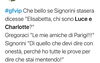 Nella casa infatti è arrivato un nuovo messaggio aereo per Elisabetta, lo striscione riportava solo due parole, ovvero Luce e Charlotte, separate soltanto da un cuore e con la R in rosso a differenza di tutte le altre lettere.