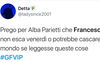 Francesco non sarà mai una persona sleale, ma nemmeno può mai diventare un cortigiano. Tantomeno nella vita ha mai tradito l’amicizia di qualcuno, non ne è capace. È stato spesso tradito, ma lui non ha mai tradito la fiducia di nessuno. Mi fa molto male sentire pettegolezzi e le mistificazioni che da settimane vengono insinuate, non lo rispecchiano, per niente, non se li merita, merita di essere apprezzato e capito. Se si salverà sarà perché il pubblico ha capito chi è. Non mi piacciono le dinamiche di corte, del gioco, nè a lui piacere a tutti i costi, nè creare illusioni o offendere chi gli è caro per il gioco. Soprattutto, mi piace la sua umanità, lealtà e bontà, delicatezza d’animo e mi ha fatto molto male sentirlo definire in modo ingiusto e così offensivo.