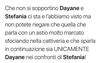 Di Stefania te l’ho sempre detto: non c’entra niente proprio con la mia personalità. È arrivato un momento in cui anche solo sentire la sua voce mi dà fastidio. Non sopporto la sua voce, il suo atteggiamento. Non vedo la verità in questa donna. […] Non riesco neanche ad avere una conversazione con lei perché sapere che non ho la verità da lei non mi piace. Perché devo aprirmi o stare a fianco di una persona che non mi interessa? Adesso c’è un’atmosfera strana perché adesso i giocatori sono tutti deboli. Stanno impazzendo e io godo, io mi diverto, perché io sto da Dio. Non c’è più gioco.
