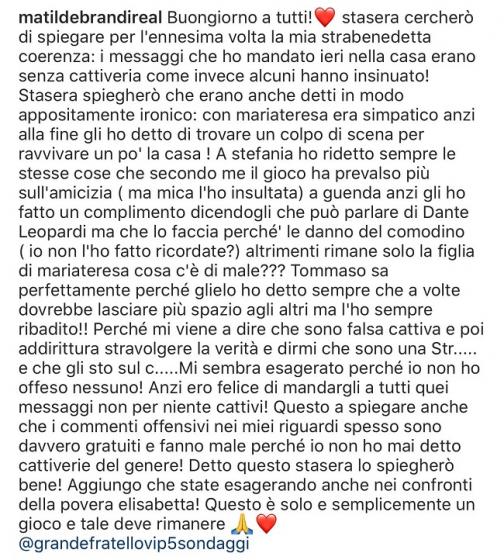 Dopo il caos e le conseguenti liti è stata la stessa Matilde a far chiarezza sul suo profilo Instagram con queste parole: