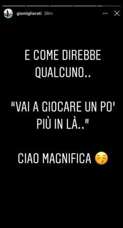 Una versione dei fatti che sembra aver convinto Giorgia, intervenuta su Instagram con un lapidario messaggio rivolto proprio alla nuova arrivata: “E come direbbe qualcuno: ‘Vai a giocare un po’ più in là’. Ciao magnifica”. Giorgia – prendendo in prestito le parole che Giulia De Lellis rivolse ad Asia Nuccetelli quando nel corso della prima edizione del Grande Fratello Vip si era pericolosamente avvicinata all’allora fidanzato Andrea Damante – ha quindi invitato la Roma a stare nel suo e in un certo modo a non fare più illazioni di questo tipo sul suo fidanzato e sulla purezza del loro rapporto.