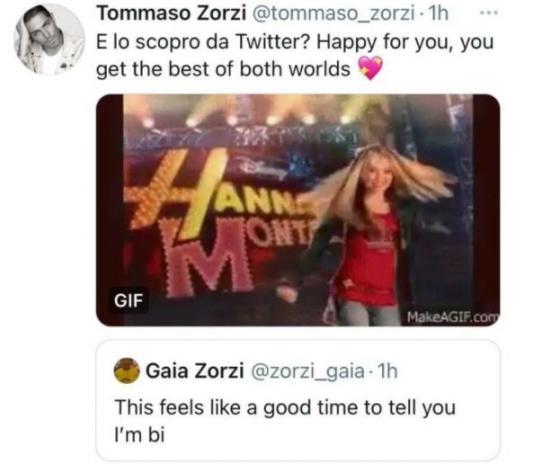 A commentare il coming out di Gaia, che attualmente è fidanzata con un ragazzo inglese di nome Victor, è stato proprio il fratello. Tommaso è così voluto intervenire e dalla sua reazione sembra aver scoperto della bisessualità della sorella proprio grazie alla sua ultima dichiarazione social. “E lo scopro da Twitter? Felice per te, prendi il meglio da entrambi i mondi”, ha detto il vincitore della quinta edizione del Grande Fratello Vip.
