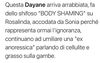 A maggior ragione perché consapevole dei gravi problemi di anoressia che hanno afflitto l’attrice qualche tempo fa, Dayane secondo molti avrebbe dovuto assolutamente evitare il discorso in questione, specie se affrontato in questi termini, anche perché il messaggio che è arrivato al pubblico a casa non è stato dei migliori. Questo è quello che pensano diversi appassionati del programma che c’hanno tenuto a dir la loro sul web: