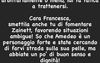 Cara Francesca, smettila anche tu di fomentare Zainett, favorendo situazioni ambigue! So che Amedeo è un personaggio forte e state cercando di farvi strada sulla sua pelle, ma abbiate un po’ di buon senso e dignità. Sto raggiungendo il limite della mia pazienza. Poi, dopo le venezuelane (si riferisce a Delia Duran, moglie di Alex Belli, ndr) scoprirete di che pasta sono fatte anche le moldave.