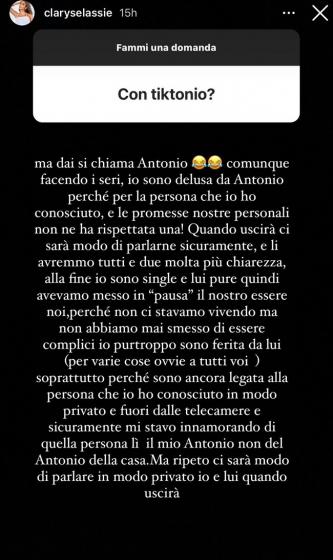 Sempre in merito ad Antonio, proprio qualche ora fa, la Selassié aveva espresso la sua opinione tramite una Instagram Stories: