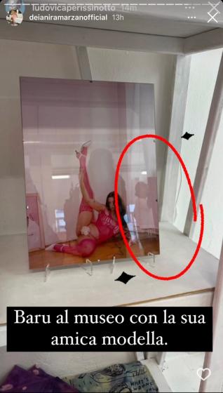 Proprio ieri l’influencer Deianira Marzano ha condiviso una storia Instagram della modella nella quale si vedeva Barù riflesso nel vetro di una delle opere di una mostra.