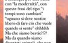 Questa roba fa schifo, anche a vederla a livello di scambio. Un ragazzino che guarda potrebbe chiedere alla mamma “mamma, cosa fa quel ragazzo lì? Bacia quella ragazza, poi bacia quell’altra. Poi le due ragazze si baciano“. Come fa un genitore a rispondere? Sono partiti alcuni messaggi di alcuni malati di mente che mi scrivono che sono rimasta nel Medioevo. Perché oggi avere una famiglia, avere un compagno, avere una figlia, non tradire il tuo compagno… non è una cosa normale. Se tu hai una vita così sei antica. […] Un’altra capra mi scrive “ti fanno così paura vedere due donne che si baciano?“.