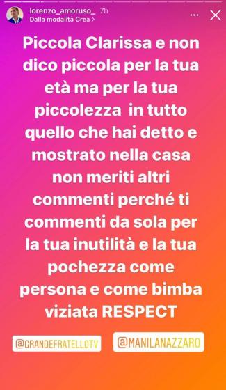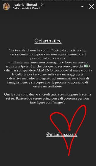 Intanto dopo lo scontro di ieri sera, Lorenzo Amoruso e Valeria Liberati sono intervenuti sui social in difesa di Manila: