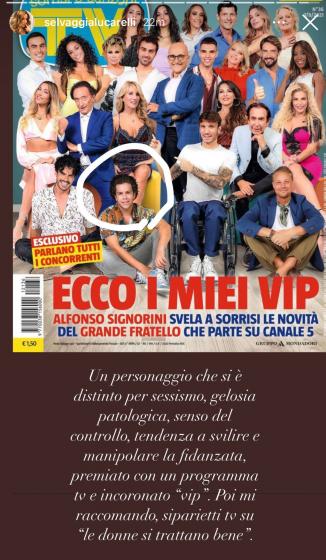 Un personaggio che si è distinto per sessismo, gelosia patologica, senso del controllo, tendenza a svilire e manipolare la fidanzata, premiato con un programma tv e incoronato “vip”. Poi mi raccomando, siparietti tv su “le donne si trattano bene”.