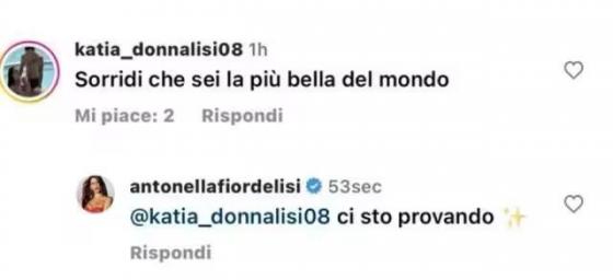 Nelle scorse ore non è passata inosservata una sua risposta su Instagram. A chi infatti la invitava a sorridere, Antonella ha risposto con un eloquente “Ci sto provando”.