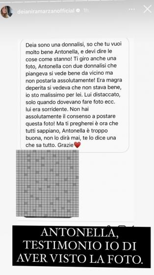 Tuttavia, secondo una segnalazione arrivata in direct a Deianira Marzano sembrerebbe che non sia tutto roseo quello che è apparso. Dietro ai sorrisi di Antonella si celerebbe tanta sofferenza. L’ex Vippona infatti sarebbe stata vista piangere ed è sembrata fortemente dimagrita.