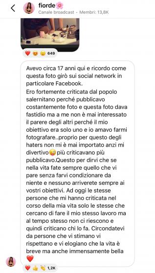 Questo per dirvi che se nella vita fate sempre quello che vi pare senza farvi condizionare da niente e nessuno arriverete sempre ai vostri obiettivi. Ad oggi le stesse persone che mi hanno criticata nel corso della mia vita solo le stesse che cercano di fare il mio stesso lavoro ma al tempo stesso non ci riescono e quindi criticano chi lo fa. Circondatevi da persone che vi stimano vi rispettano e vi elogiano che la vita è breve ma anche immensamente bella.