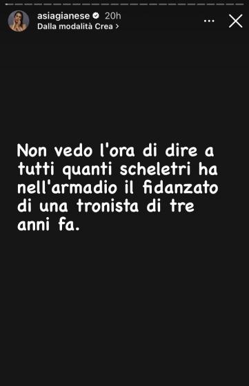 Ieri Asia Gianese ha condiviso una storia sul suo profilo Instagram, facendo sin da subito mormorare il web.