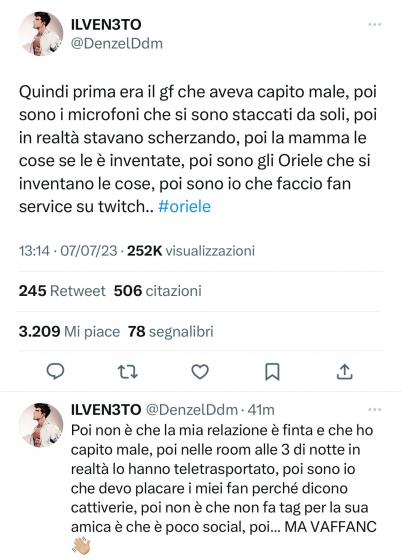 Quindi prima era il Gf che aveva capito male. Poi sono i microfoni che si sono staccati da soli. Poi in realtà stavano scherzando. Poi la mamma le cose se le è inventate. Poi sono gli Oriele che si sono inventate le cose. Poi sono io che facci fan service su Twitch.