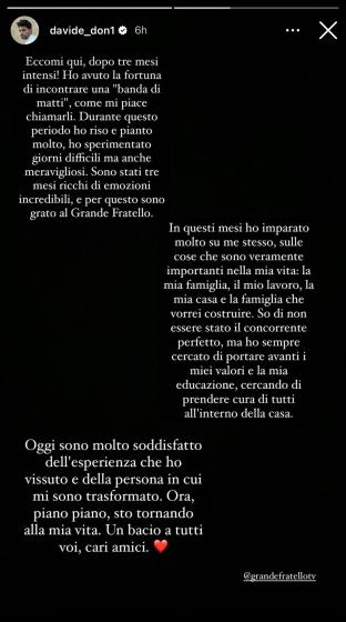 Dopo essere stato eliminato dalla Casa del Grande Fratello Vip nel corso della puntata di giovedì scorso, Davide Donadei si è riappropriarsi del suo cellulare e di conseguenza dei suoi profili social.