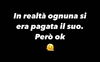 E’ successo che mio marito abbia pagato le vacanze a delle mie amiche, in Messico, a Los Angeles, Dubai. A quella di Capri ha contribuito anche questa mia amica che tra l’altro è una persona importante. Non voglio che passi il messaggio che questa mia amica ha bisogno di mio marito per pagarsi le vacanze, perchè non ne ha bisogno. Quindi non voglio neanche che lei si arrabbi con me. Io ho messo i soldi, lei ha messo i suoi soldi ed altre cose ce le hanno anche regalate perchè parliamo di persone seguite su Instagram. Mi dà fastidio che sembra che adesso stia con una persona perché paga le vacanze alle mie amiche.