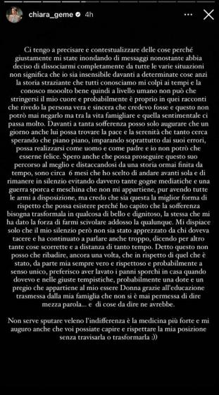 Ci tengo a precisare e contestualizzare delle cose perché giustamente mi state inondando di messaggi. Nonostante abbia deciso di dissociarmi completamente da tutte le varie situazioni non significa che che io sia insensibile davanti a determinate cose. Anzi, la storia straziante che tutti conosciamo mi colpì ai tempi e la conosco molto bene. Quindi a livello umano non può che stringersi il mio cuore. Probabilmente è proprio in quei racconti che rivedo la persona vera e sincera che credevo fosse e questo non potrò mai negarlo. Ma tra la vita familiare e quella sentimentale ci passa molto.