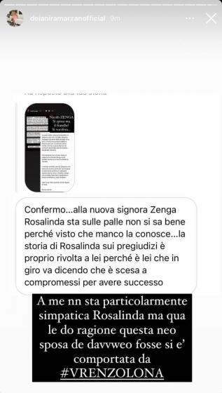 Qualche ora fa però è arrivata una segnalazione all’influencer Deianira Marzano secondo cui il vero motivo dell’assenza della famiglia di lui al matrimonio, è dovuto all’astio e all’invidia che la Crialesi avrebbe nei confronti di Rosalinda Cannavò, fidanzata di Andrea: