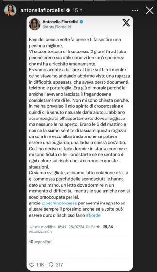 Nelle scorse ore attraverso una storia pubblicata sul suo profilo Instagram Antonella Fiordelisi ha voluto raccontare una vicenda accaduta nei giorni scorsi a Ibiza.