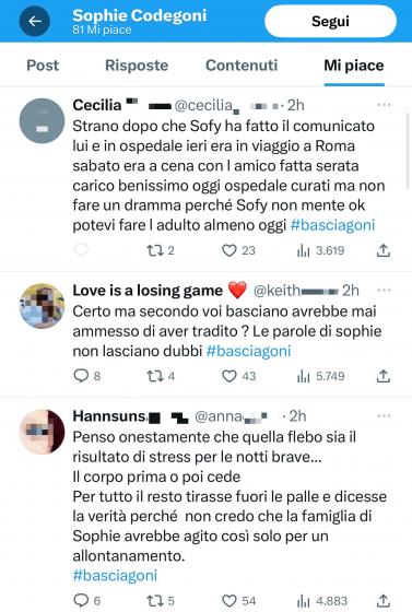 Ormai la vicenda ha incuriosito il web, che non ha potuto non notare alcuni like della Codegoni ad alcuni tweet che parlavano del comportamento del suo ex compagno.