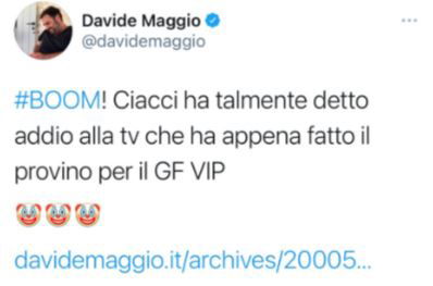 Dopo la dichiarazione di Ciacci arriva la sarcastica reazione del vincitore del Gf Vip 5 e il blogger Davide Maggio lancia una clamorosa indiscrezione
