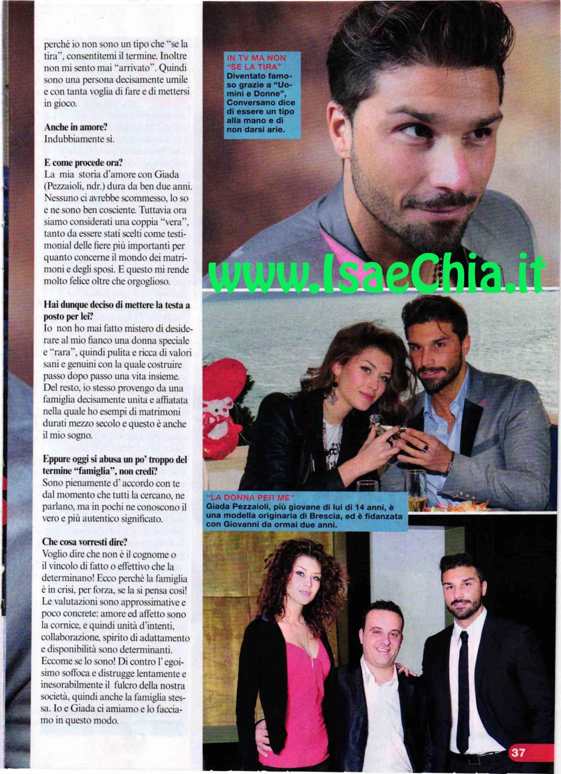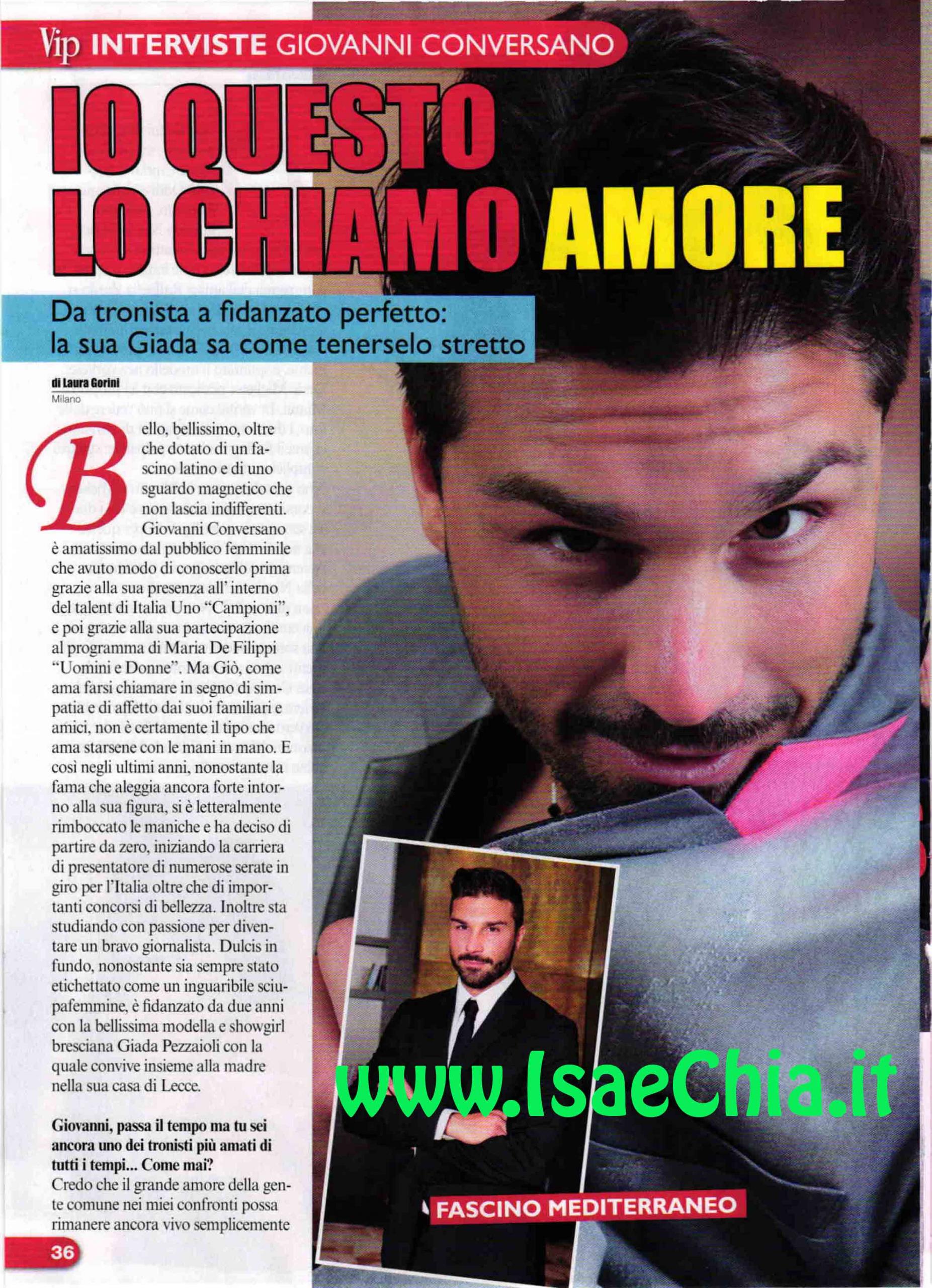 L’ex tronista Giovanni Conversano spiega i motivi del suo successo ancora oggi: “Credo che l’amore della gente comune nei miei confronti rimanga ancora vivo semplicemente perché nono sono uno che “se la tira” e non mi sento arrivato. Sono una persona umile e con tanta voglia di mettersi in gioco. La mia storia con Giada Pezzaioli dura da due anni, anche se nessuno ci avrebbe scommesso. Ora siamo considerati una coppia “vera” al punto da chiamarci come testimonial. Non ho mai fatto mistero di cercare una donna “rara” e con valori, come quelli trasmessi dalla mia famiglia. Tutti parlano di famiglia e la cercano ma pochi ne conoscono il significato: l’amore fa da cornice, ma poi collaborazione, unità d’intento e spirito di adattamento sono determinanti. E io e Giada ci amiamo in questo modo!”