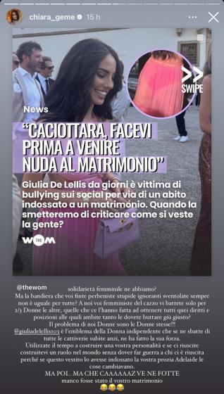 Di recente, in sua difesa è intervenuta un’ex corteggiatrice del dating show di Maria De Filippi. In una delle sue storie Instagram Chiara Rabbi ha repostato uno dei tanti insulti indirizzati a Giulia, lasciandosi andare poi in un lungo sfogo contro le femministe.