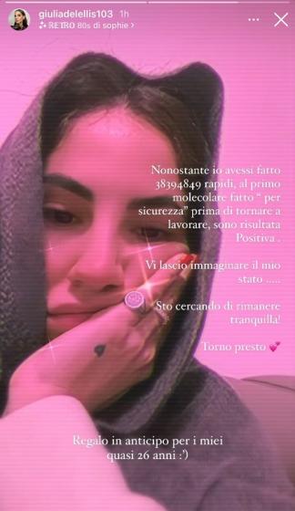 In questi giorni la De Lellis, che ha trascorso il natale a Roma con la sua famiglia ed il compagno Carlo Beretta, ed il capodanno in montagna sempre insieme al fidanzato, aveva più volte pubblicato, nelle sue storie su Instagram, le immagini dei numerosi tamponi rapidi effettuati e tutti con esito negativo.