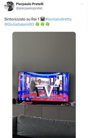 A supportare questa nuova avventura televisiva di Giulia non è mancato il fidanzato Pierpaolo Pretelli. L’ex Vippone su Twitter ha pubblicato un post in cui mostrava ai follower di essersi sintonizzato su RaiUno.