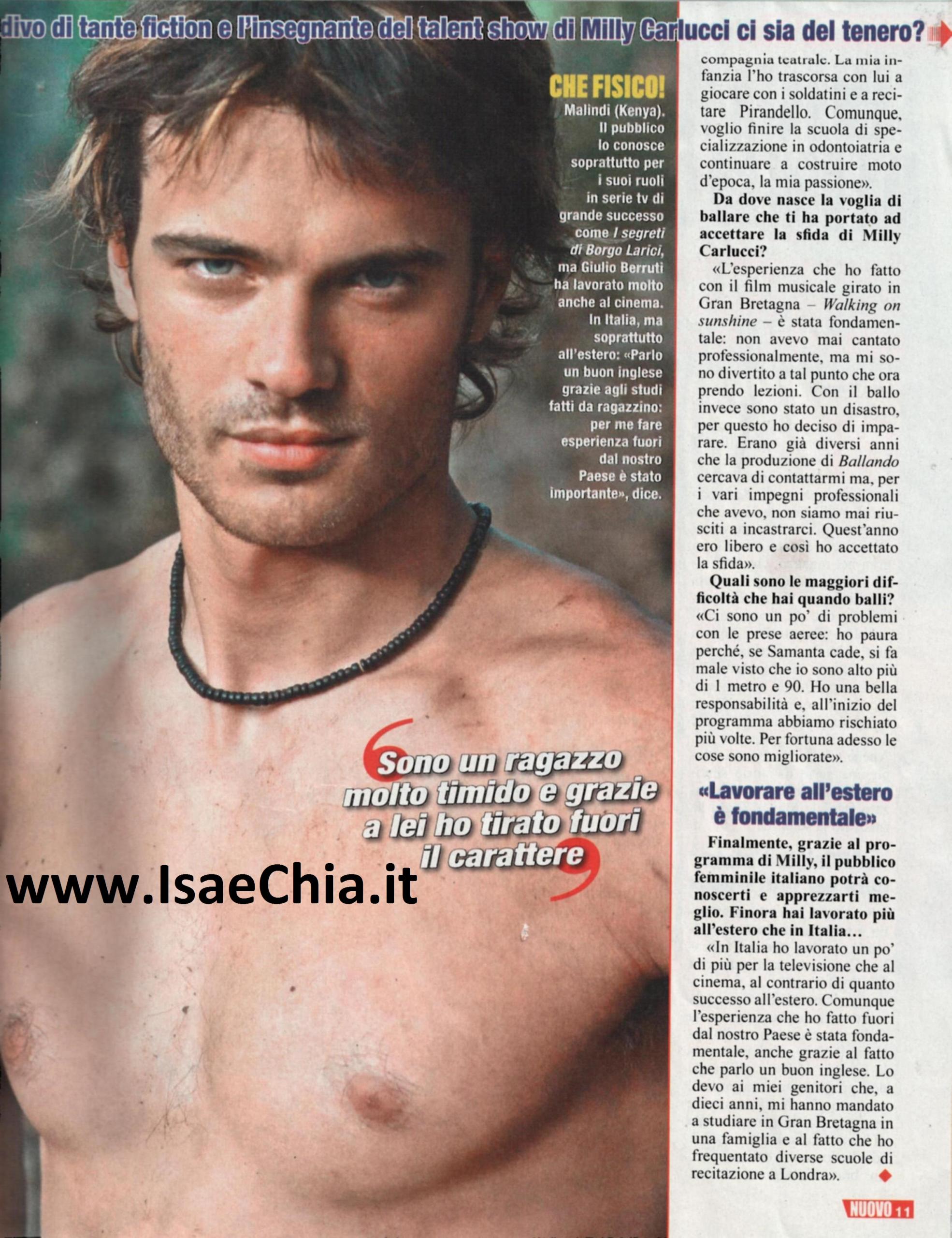 A Ballando con le stelle l’attore Giulio Berruti gareggia in coppia con la maestra Samanta Togni, che ha dichiarato di apprezzare il suo partner sia dal punto di vista estetico che da quello personale, ma ha precisato di essere fidanzatissima con Daniele Mai (QUI per rileggere la sua intervista). L’attore, invece, dichiara: “Samanta è straordinaria, ha una pazienza infinita con me e si è creata davvero una bella sintonia: si vede anche sulla pista da ballo. E’ riuscita a tirar fuori il lato deciso del mio carattere, che, in genere, essendo timido, non riesco a tirare fuori”. Quando gli si chiede se lui è single e se non c’è nient’altro con lei, risponde: “E’ nata una bella passione che si nota anche in pista; d’altronde l’importante è regalare emozioni al pubblico. Per il resto, il suo fidanzato Daniele ha un passato da pugile, quindi non voglio rischiare! Tra me e Samanta c’è un affiatamento naturale anche al di là della pista, parliamo di tutto, ma soprattutto ci piace stare insieme. Questo si trasforma in passione quando danziamo, ma nulla di più”. Poi il bellissimo delle fiction racconta come è approdato al programma di Milly Carlucci: “L’esperienza fatta con il film musicale Walking on sunshine in Gran Bretagna è stata fondamentale: non avevo mai cantato professionalmente, ma mi sono divertito a tal punto che ora prendo lezioni. Con il ballo sono stato un disastro, quindi ho deciso di imparare. Erano diversi anni che la redazione di Ballando cercava di contattarmi, ma a causa dei miei impegni professionali, non siamo mai riusciti ad accordarci. Adesso ero libero e ho accettato la sfida. Ci sono dei problemi con le prese aeree: se Samanta cade, si fa male, dato che sono alto 1,90! Ma ora le cose stanno migliorando. In Italia ho lavorato più per la tv, mentre all’estero ho lavorato più per il cinema. L’esperienza fatta all’estero è stata importante, anche grazie al fatto che parlo bene inglese: i miei mi hanno mandato a studiare in Gran Bretagna presso una famiglia a dieci anni!”.