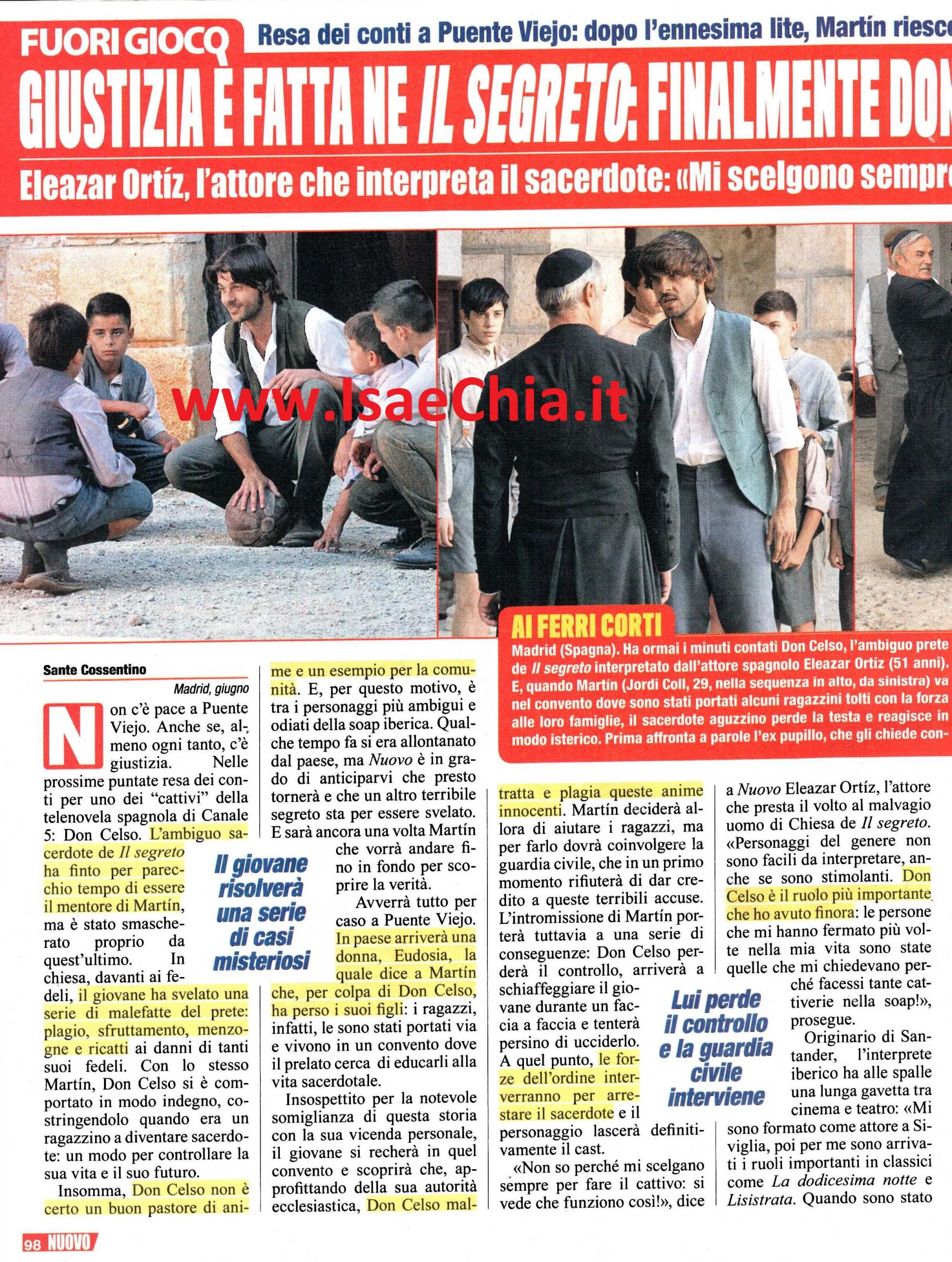 E’ un momento di grande fervore a Puente Viejo: nella fiction più seguita di Canale 5, Il segreto, uno dei personaggi principali, Tristan, è stato ucciso nel giorno del suo matrimonio. Ma, mentre sull’omicidio rimarrà un velo di mistero, uno dei personaggi ‘cattivi’ della soap verrà presto smascherato. Si tratta di don Celso, il potente sacerdote che aveva costretto il piccolo Martin a prendere i voti e a diventare quello che poi sarebbe tornato come don Gonzalo. Così, dopo aver svelato davanti a tutti i fedeli le malefatte e la corruzione di don Celso, Gonzalo tornerà a svelare dei lati oscuri. In paese arriva una donna, Eudosia, che dice a Martin che, a causa di don Celso, ha perso i suoi figli, che le sono stati portati via per essere educato in un convento. Insospettito per la somiglianza con la sua storia, Gonzalo si reca nel convento e scopre che don Celso maltratta e plagia queste anime innocenti.