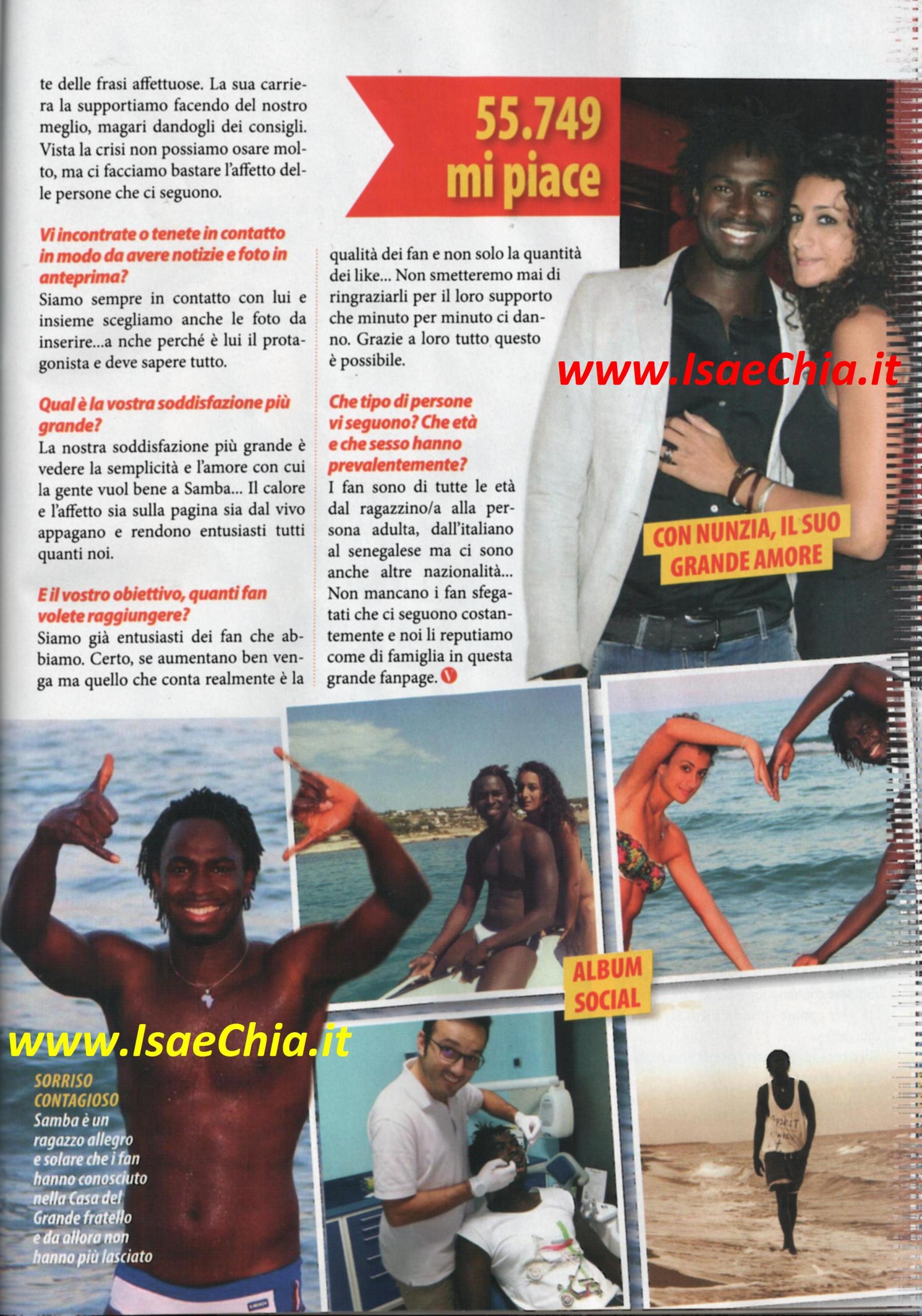 Samba Laobe Niaye è stato uno dei finalisti del Grande fratello 13: il pubblico l’ha apprezzato fin dal primo momento e ha una pagina Facebook con oltre 55.000 Mi piace. “Abbiamo deciso di aprire la fanpage per far conoscere ancora di più il nostro amico Samba e la sua bellissima storia d’integrazione. Ce ne occupiamo noi insieme alla famiglia italiana di Samba e la sua fidanzata Nunzia” raccontano i ragazzi che hanno aperto la pagina Facebook. “Supportiamo la sua carriera facendo del nostro meglio, magari dandogli dei consigli. Vista la crisi non possiamo offrire molto, ma ci facciamo bastare l’affetto delle persone che lo seguono. La nostra soddisfazione più grande è vedere la semplicità e l’amore con cui la gente segue Samba. Siamo già entusiasti del numero di fan che abbiamo, ma se il numero aumenterà, ben venga. Quello che conta in realtà è la qualità e non la quantità. I fan sono di ogni età, dall’italiano al senegalese, ma anche di altre nazionalità. E non mancano i fan sfegatati, che reputiamo la grande famiglia di questa fanpage!”.