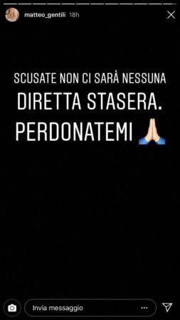 Ieri sera infatti il calciatore viareggino avrebbe dovuto fare una diretta sul portale Twitch, probabilmente anche con qualche intervento della fidanzata, ma proprio all’ultimo ha annunciato tramite il suo profilo Instagram che era saltata: