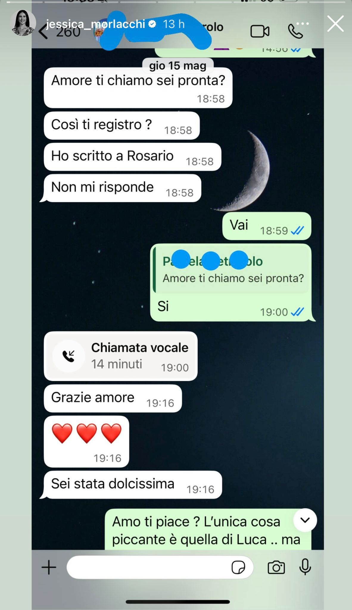 A conferma di ciò, la Morlacchi ha pubblicato alcuni screen delle sue chat, spiegando: