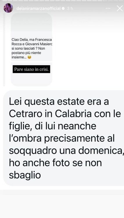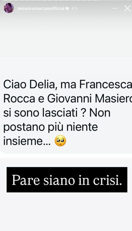 Ciao Deia, ma Francesca Rocco e Giovanni Masiero si sono lasciati? Non postano più niente insieme..