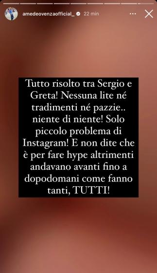 Tutto risolto tra Sergio e Greta! Nessuna lite nè tradimenti nè pazzie… Niente di niente! Solo un piccolo problema di Instagram! E non dite che è per fare hype, altrimenti andavano avanti fino a dopodomani, come fanno tanti, TUTTI!