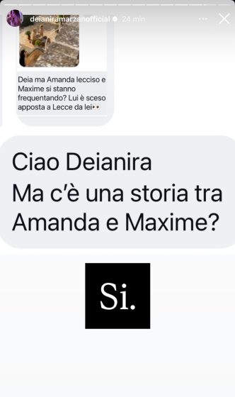 Nelle scorse ore, però, sul profilo di Amanda e Maxime sono state pubblicate diverse storie che testimoniano la presenza dell’ex rugbista in Puglia dalla Lecciso.