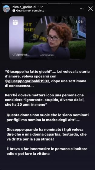 “Giuseppe ha fatto giochi”…. Lei voleva la storia d’amore, voleva sposarsi con Giuseppe, dopo una settimana di conoscenza… Perché doveva mettersi con una persona che considera “ignorante, stupido, diverso da lei, che ha 20 anni in meno”. Questa donna non vuole che le siano nominati per figli ma nomina la madre degli altri. Giuseppe quando ha nominato i figli voleva dire che è una donna caparbia, testarda, che va dritta per la sua strada! È brava a far innervosire le persone e incitare odio e poi fare la vittima.