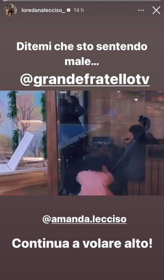 La reazione di Loredana non si è fatta attendere. In una storia Instagram la donna ha postato un frame in cui si vede l’ex velina di Striscia la notizia sfogarsi con gli altri suoi coinquilini, aggiungendo come didascalia: