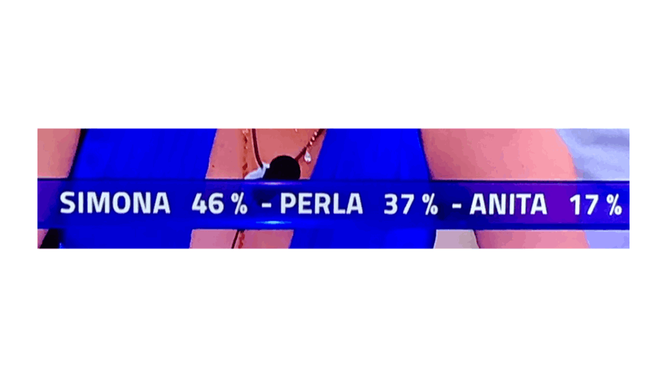 S’è fatta ‘na certa, e mentre Massimiliano Varrese litigava con Letizia Petris protetta da Paolo Masella che per tutta sera ha avuto la stessa mobilità di un lichene sotto Fentanyl, ecco arrivare il verdetto televoto che vede il trionfo della serafica asfaltatrice Simona Tagli.