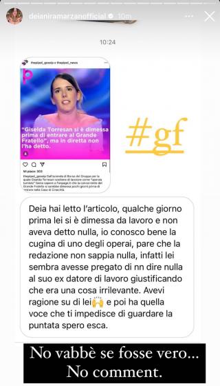 Ad aggiungere qualche dettaglio ci ha pensato anche Deianira Marzano che ha pubblicato in una storia Instagram un direct di un utente: