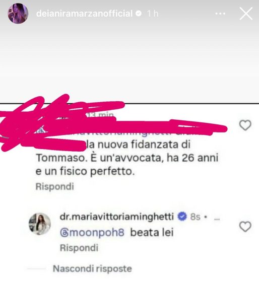 Da tempo si vociferava che lui avesse già trovato una nuova fidanzata e alcune segnalazioni arrivate da un follower a Deianira Marzano, confermerebbero che Tommaso potrebbe avere in effetti una nuova storia con un’avvocata di 26 anni e, come ci ha tenuto a precisare la segnalatrice, “un fisico perfetto”.