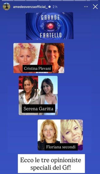 A svelare i nomi delle tre possibili opinioniste è stato Amedeo Venza tramite una storia pubblicata sul suo profilo Instagram.