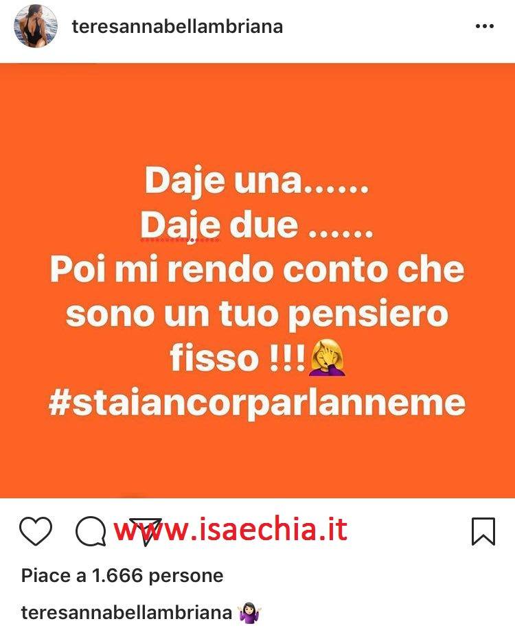 E non è la prima volta: già nei giorni scorsi, infatti, la Rodriguez aveva menzionato la Pugliese. E pochissimi istanti fa, l’ex tronista ha risposto così su Instagram: