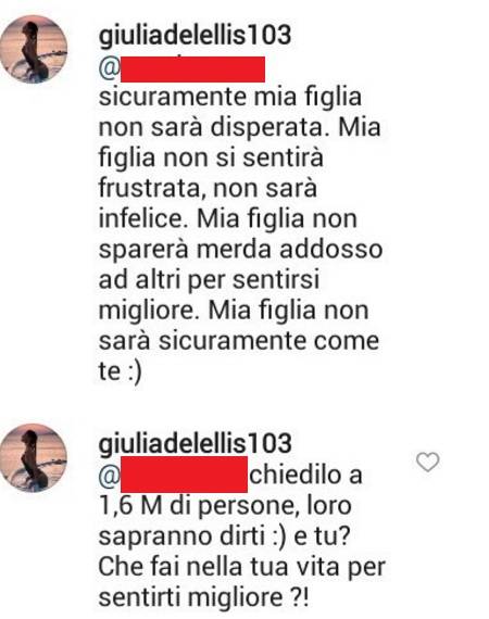 E Giulia, notoriamente sempre senza peli sulla lingua, ha voluto rispondere a modo suo agli haters: