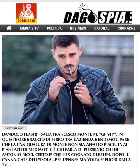 ‘Grande Fratello Vip 3’, Francesco Monte fuori dal cast? Clamorosa indiscrezione di Dagospia!