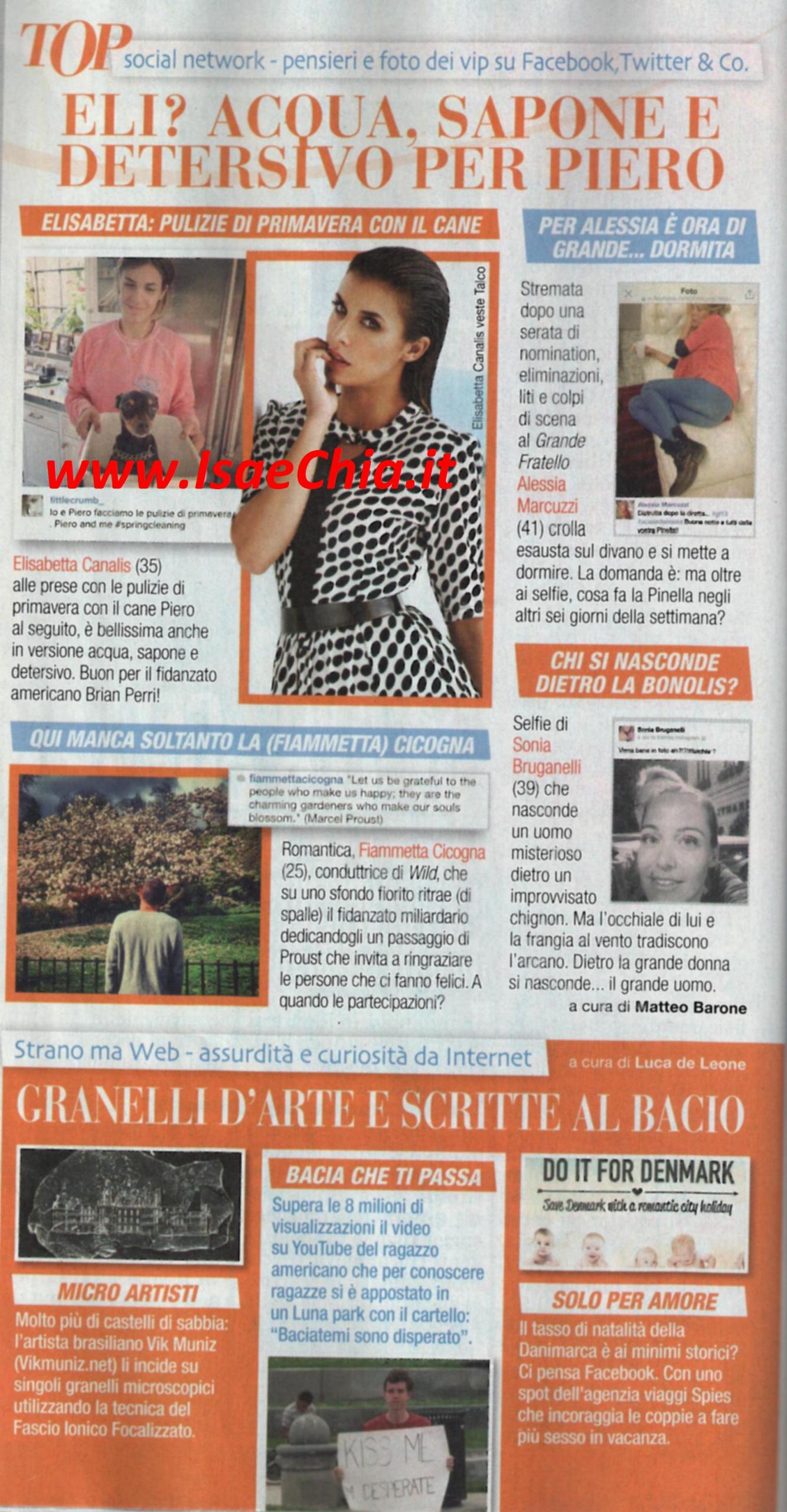 Dai social, invece, vediamo l’ex Velina Elisabetta Canalis, che lava il suo cane Piero e appare bellissima anche senza trucco, in versione acqua e sapone, e la conduttrice Alessia Marcuzzi, che, dopo una serata di colpi di scena al Grande fratello 13 crolla esausta sul divano.